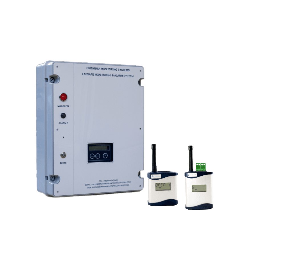 A wireless monitoring system used to monitor all important items of equipment such as temperature critical fridges and freezers, cryogenic vessels, gas concentration and mains monitoring as well as many other inputs.