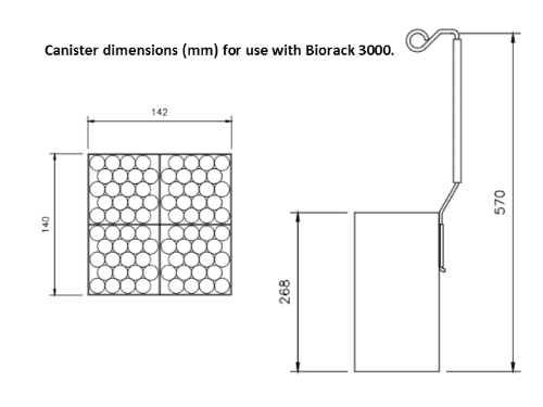 The Biorack 3000 is suitable for canes up to 300mm in length. With the tubes inserted into the canister, this will leave approximately 32mm of the cane above the canister, allowing users to easily choose required samples.