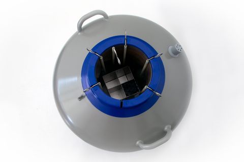 At less than 17cm (1/3) wider and only 2.8cm (1/16) taller than the two of the most popular storage tanks the Biorack 3000 can store up to 3 x the number of canes (140-160 vs 480 canes). This is achieved by having a larger opening to allow a specially designed square canister. The Biorack 3000 contains 6 square canisters. Each square canister can hold up to 80 canes with each canister separated into 4 sub-sections each able to hold up to 20 canes. This allows you to maintain cataloguing and organisation when storing all the extra canes but using far less floor space.